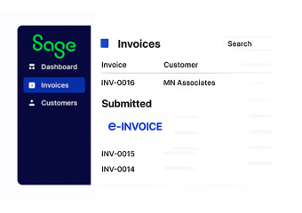 Invoice tracking is managed through dashboards providing validation results, submission responses, and real-time visibility across Sage environments.