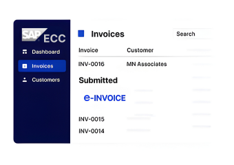 Invoice tracking is managed through dashboards providing validation results, submission responses, and real-time visibility across SAP ECC environments.